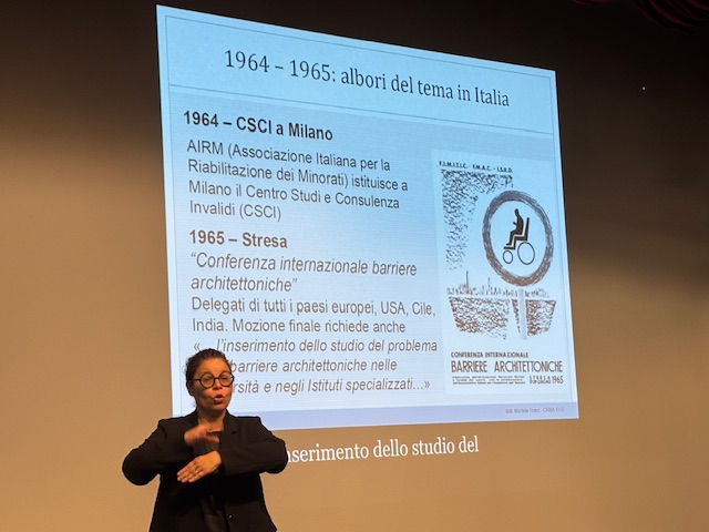 Spetta a Michele Franz del Criba ricostruire storicamente il percorso normativo sull’accessibilità. Oggi “accessibilità “ è un termine comune, da anni come Criba studiamo queste tematiche, ma non di 80 anni fa. Il percorso storico dell’accessibilità parte da un passato doloroso, quando il regime nazista considerava le persone con disabilità “vite indegne di essere vissute”. Negli anni ’60 e ’70, la normativa comincia a emergere, con tappe importanti come il manuale Del Fabro e De Rocco (1979), che segna un punto di svolta.